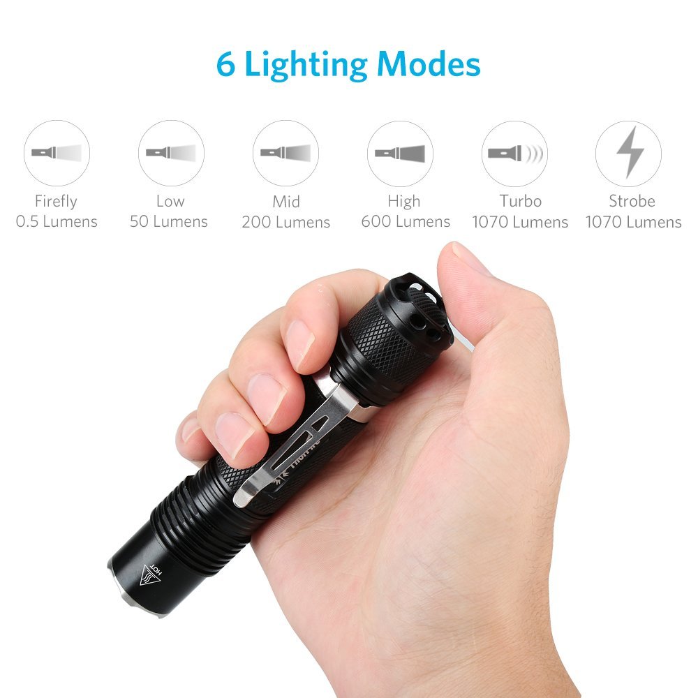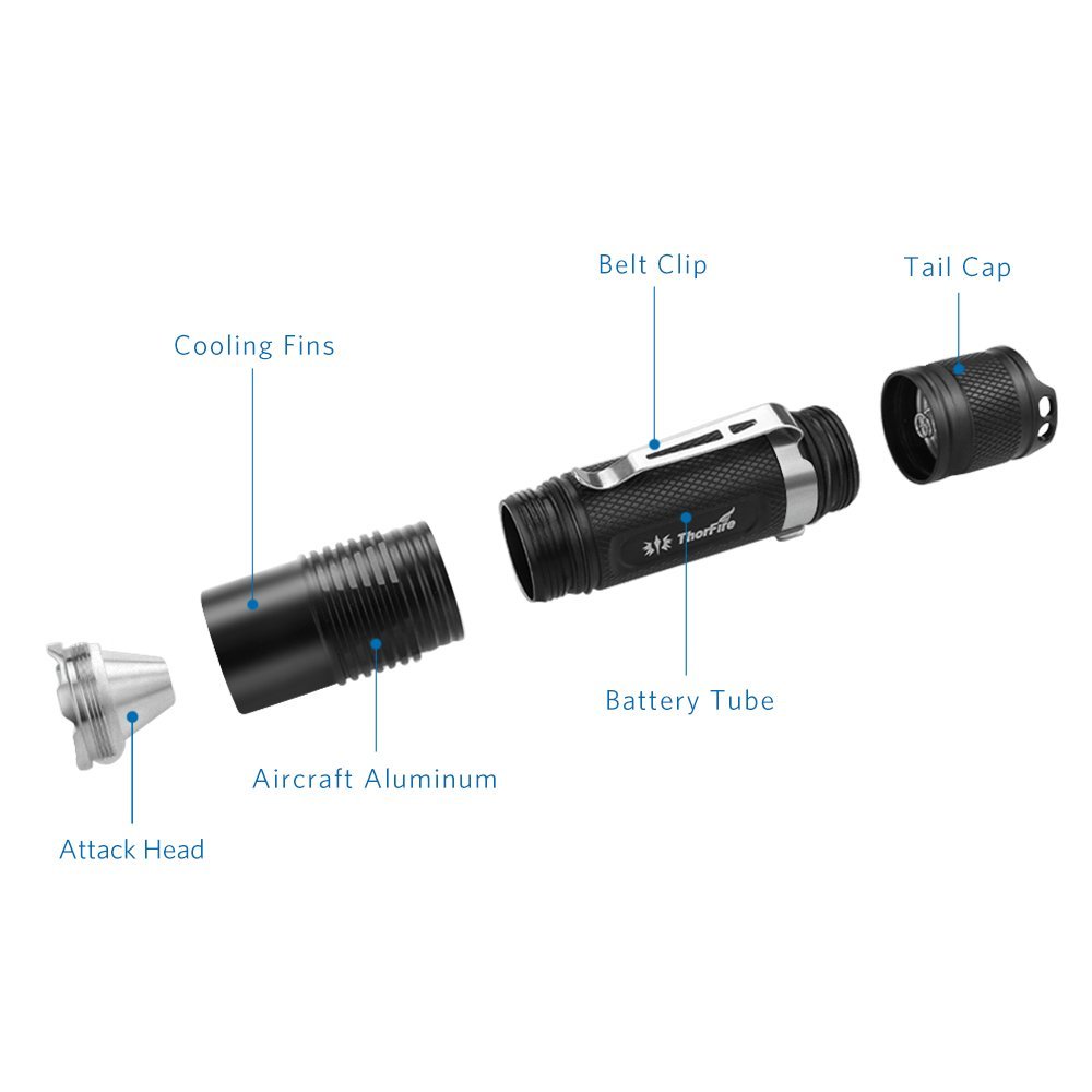 ThorFire VG15S Flashlight Size: Length: 4.8 inch; Diameter: 0.95 inch; Weight:2.76 oz