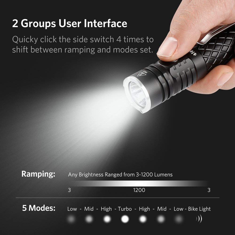 ThorFire Ramping UI Flashlight with 18650 Battery and Charger, 1200 Lumen XPL2 Led Tactical Light with Memory Function, TK18 Perfect for Hiking,Camping,Fishing