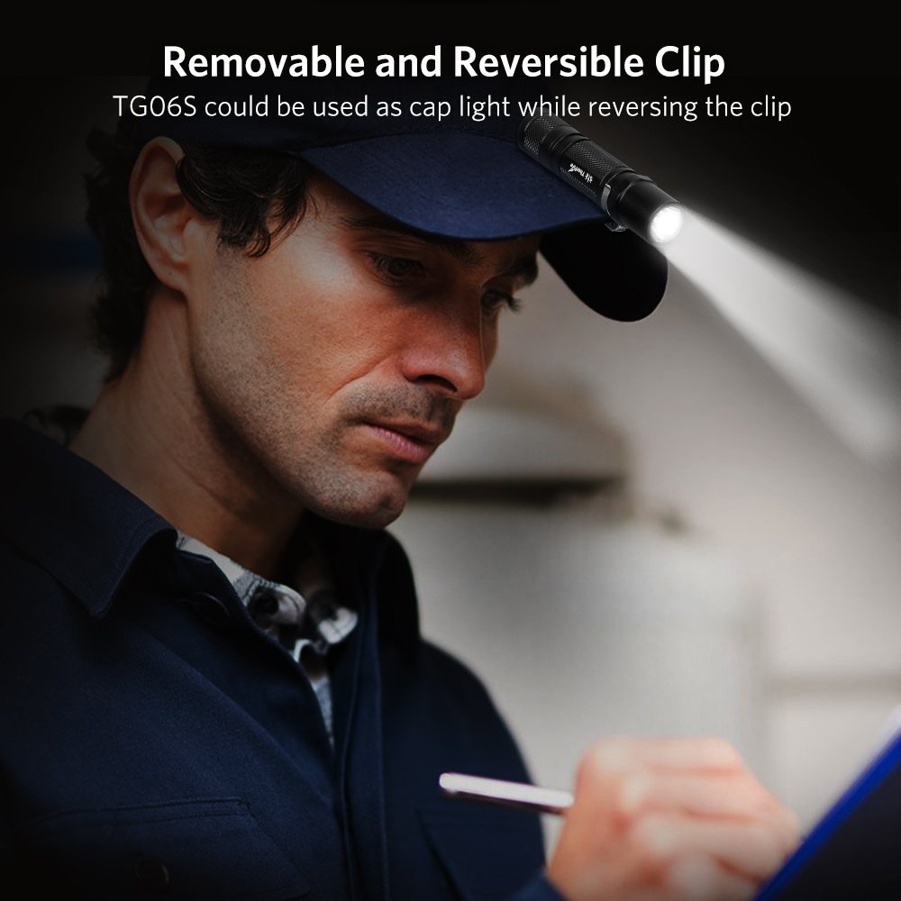 With one considerate metal clip, you can clip it to your shirt pocket, or reverse the clip to be used as a hat cap light.
