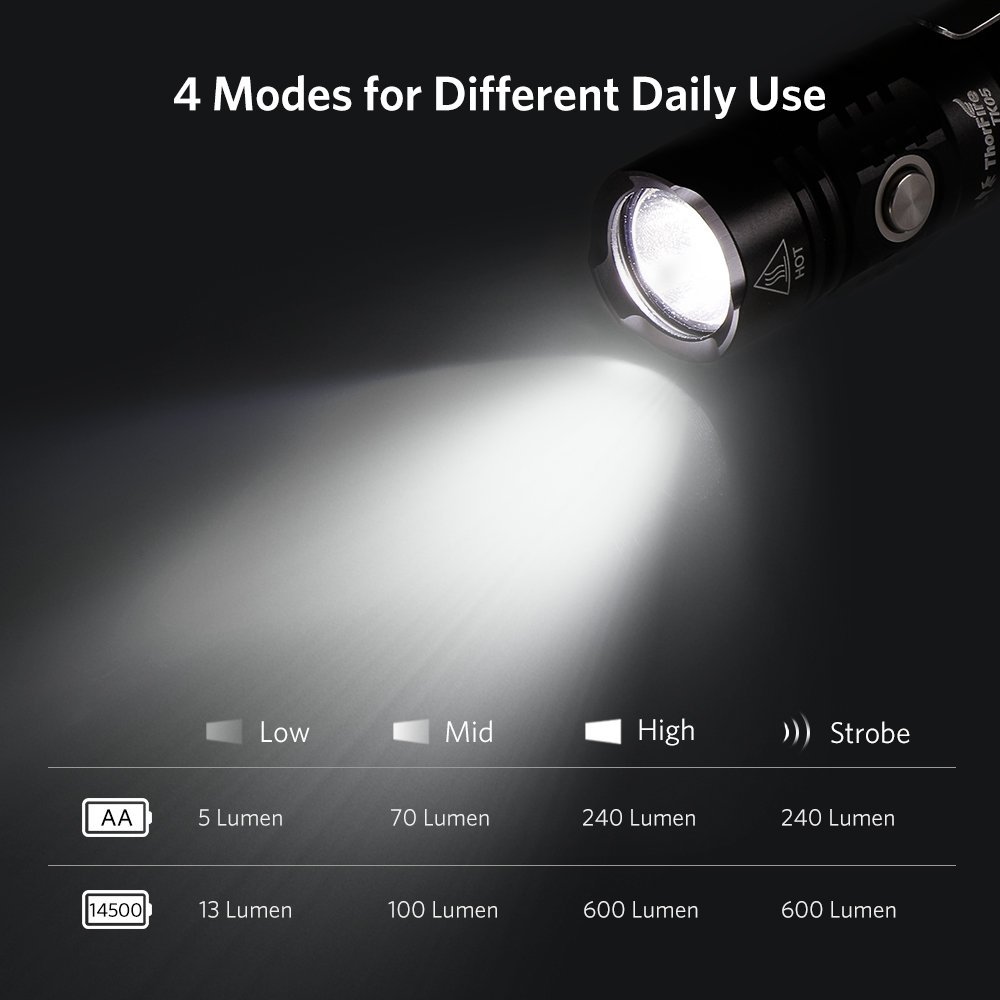 ThorFire TK05 Mini Flashlight, 600 Lumen, XPG3 , Runs off single AA or 14500 Battery